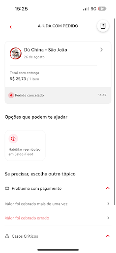 Read moreFiz um pedido pelo ifood, previsão de entrega era até 20:28. As 20:59 mandei mensagem questionando sobre a entrega e não obtive resposta. Mandei outras mensagens,e que não tiveram retorno, até às 21:30 e resolvi cancelar o pedido. Após 5 minutos da análise da solicitação de cancelamento o ifood cancelou e pedi em outro restaurante. Não deu nem 2 minutos do cancelamento o motoqueiro chegou, informei que havia acabado de cancelar o pedido. Enfim, poderiam ao menos responder no aplicativo. Imprevistos podem ocorrer mas é complicado quando ficamos sem informação se vai chegar ou quando vai chegar... se eu soubesse que estava a caminho teria esperado(já estava esperando por 1 hora mesmo...). Fica a critica constitutiva, see querem vender pelo ifood ao menos respondam...