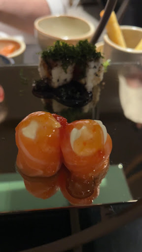 Estava bem lotado, fomos numa quarta-feira, chegamos 19:30 e quase não tinha lugar disponível. Acabamos escolhendo na parte superior; só não optamos por ficar lá fora porque estava muito calor naquele dia e preferimos ficar dentro com o ar condicionado. 💨 🙌🏻O atendimento foi excelente na hora que chegamos. Porém depois percebemos que os pedidos acabaram demorando um pouco mais. Como sentamos bem na frente da saída dos pratos, percebemos pelo alvoroço que estavam com problemas de pedido repetido ou algo do tipo. Tanto que pedimos 2 temakis, chegaram dois e um estava errado e depois chegou o outro certo. Senti que não possui tantas opções como em alguns restaurantes da cidade, porém eu fico satisfeita com as opções que o restaurante tem. 🍨 A sobremesa que pra mim é algo indispensável num rodízio deixou a desejar. Brigadeiro estava bom porém é só brigadeiro, nada de elaborado. O sorvete é daqueles bem doces de mercado mesmo, não curti tanto. A casquinha de massa que acompanha o sorvete é uma delícia, basicamente o que salvou a sobremesa.