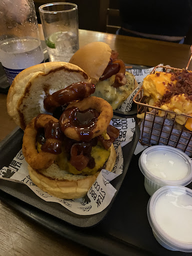 Read moreHambúrguer muito bom e muito bem feito. Veio no ponto certo em que pedimos (Ponto menos). As entradas de queijo gouda e de mandioca com carne seca que vem acompanhadas de molho defumado e geleia de pimenta, são as melhores. A respeito dos valores, não fogem do padrão das hamburguerias em geral. Pra quem gosta de molhos acompanhados no lanche de ketchup e maionese, realmente não vem. Mas é só pedir pra mulher da cozinha que ela da bastante sachê (foi o meu caso). Único ponto de melhoria é o atendimento, de ter que se levantar da mesa, ir ao caixa pagar e retirar bebidas e pedidos. Que apesar de estar se tornando padrão em vários lugares, é meio ruim. Poderiam trocar por tablets na mesa onde vc faz o pedido e o atendente leva. No geral, tudo...