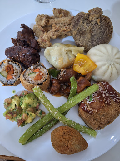 Read moreMeu Deus! Que surpresa esse lugar! Super low profile e muuuito gostoso! Um lugar pra comer em paz e conversar a vontade! Primeira vez que fui lá tinha tantas opções de comida vegetariana que eu nem sabia por onde começar! A loka aqui queria comer um pouco de tudo pra conhecer, e quase não cabia no prato! Kkkk Eu não sabia que vegetarianos podiam comer tão bem! Quando me convidaram pra almoçar num restaurante vegetariano, eu achei que ia lá comer uma saladinha, acabei recebendo uma aula de culinária internacional! Os donos são uns fofos e explicam as comidas pra gente! Gente muito boa mesmo! O preço é surpreendente barato! E eles tem umas geladeiras com produtos artesanais veganos que a gente pode cozinhar em casa. O que é um super bônus pra quem não tem muita paciência pra cozinhar em casa e tem dificuldade de encontrar marcas de produtos totalmente...