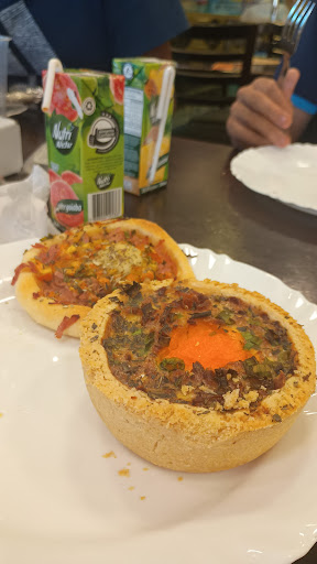 O local oferece uma boa variedade de opções de comida, com valores justos pela qualidade do que é servido. No geral, a experiência foi positiva, mas com alguns pontos que poderiam ser aprimorados. Um detalhe que me decepcionou foi a ausência de tags informativas na bancada de alimentos. Ao perguntar a uma atendente sobre o recheio da empada, fui informada que era de carne moída. No entanto, ao consumir, percebi que era de presunto, algo que costumo não comer muito, porém, não perdeu, dei parte para meu filho e esposo. Além disso, apesar da massa ser feita de "massa podre", a empada estava um pouco seca. O atendimento foi excelente, tanto por parte dos funcionários que servem quanto no caixa. Todos muito atenciosos e educados. O ambiente, porém, estava muito quente, com pouca ou nenhuma ventilação. Seria interessante investir em um sistema de ar-condicionado ou ventilação mais eficiente para maior conforto dos clientes. Outro ponto de atenção é a limpeza das mesas, ao procurar onde sentar, encontrei três mesas ainda sujas após a saída dos clientes. Esse processo poderia ser mais ágil. O estacionamento é na rua e, por ser uma área bastante movimentada, pode ser difícil encontrar vaga, principalmente em horários de pico. Tirando esses detalhes, recomendo o local. É uma boa opção para um lanche ou almoço rápido, com comida gostosa e...