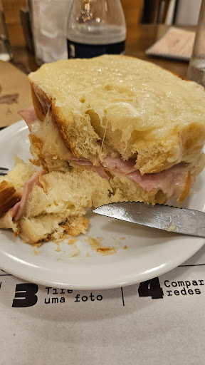 Expectativa: Sanduíche de queijo minas e Presunto em brioche de fermentação natural gratinado Realidade: só 2 fatias de Presunto, muçarela ligeiramente derretida em pão seco e frio. Perde de 10 a 0 pra um misto de padaria raiz da esquina.