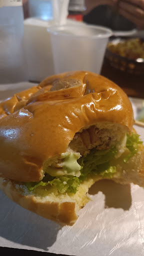 O hambúrguer de camarão: E extremamente cremoso e o gosto de camarão e delicioso, bastante molhado(meu favorito)