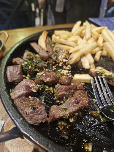 Read moreConseguimos estacionar com a ajuda do manobrista muito simpático. Entramos na fila pra conseguir uma mesa (que não foi demorada) mas ficamos um pouco chateados porque tinha gente que tinha acabado de chegar e furava a fila, sentava na mesa que tinha acabado de desocupar, e os garçons não falaram nada... enfim, sentamos e pedimos torresmo, alguns espetinhos e um tira-gosto da casa à parmegianna cujo nome eu não lembro. O torresmo tinha pouca carne, muita gordura e não estava todo crocante, estava um pouco borrachento. Os espetinhos e a parmegianna estavam ok. Pedimos chopp escuro, e depois de meia hora sem que o chopp chegasse, fui até o balcão onde descobri que o chopp escuro havia acabado e havia sido cancelado da nossa comanda (ninguém avisou nada pra gente). Peguei os chopps claros mesmo e levei pra mesa. Queriamos beber mais porém a garçonete não passava nunca, e quando passava era de cabeça baixa e sem olhar pra gente. Acabamos de comer e fomos embora. No dia seguinte voltei a tarde pra almoçar, o lugar estava mais tranquilo. Gostei de um prato com carne seca que parecia um escondidinho aberto. O pessoal pediu uma carne que parecia picanha com chimichurri e veio frio, eles pediram pro prato voltar e eles esquentaram. O lugar é muito bonito, tem potencial, um bom gerente vai colocar as...