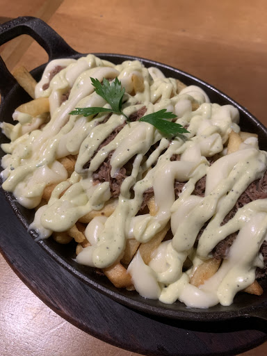 Meu irmão pediu um prato que era uma espécie de parmegiana de baby beef. Estranhei a proposta, mas ok a gnt vê de tudo. Quando chegou, fiquei pensando que não era real que cobravam 70 reais por uma porção tão pequena de comida. Além disso, aquele negócio era enjoativo, parece que para compensar a falta de carne que não parecia ser baby beef eles colocaram uma camada de catupiry com um queijo polenguinho. O molho de tomate não tinha gosto de nada, e eu nunca vi parmegiana que vem acompanhada de molho verde e vinagrete, mas até aí ok. Pelo o preço cobrado poderia ao menos ter um acompanhamento daquela batata frita de pacote que parece ser o que servem.