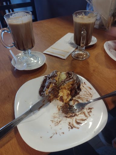 Pedi um croissant de chocolate que era simplesmente impossível de cortar, porque não desfiava de jeito nenhum e estava duro feito um papelão. O preço? 16 reais, apenas aquela única unidade. Meu noivo e eu pedimos 2 cappuccinos e 1 bomba de chocolate além do croissant, a bomba veio com gosto de dipirona no recheio, os capuccinos vieram adoçados sem aviso prévio (o que é chatíssimo, considerando que se espera que isso seja perguntado, mas não absurdo e nem o ponto principal dessa crítica).