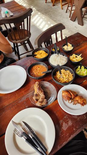 Além disso, eu e outro colega pedimos pratos individuais de frango, que também vieram juntos. Um dos frangos estava extremamente duro, e o outro, completamente queimado.