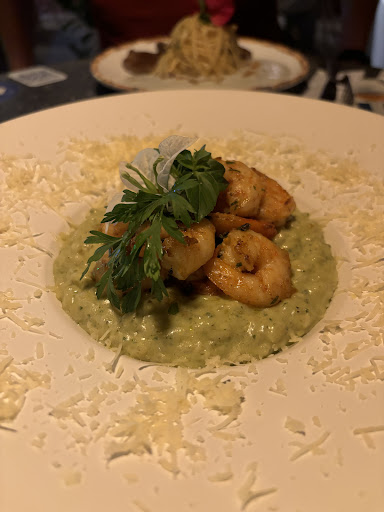 Comida com ótimos ingredientes, tem 2 cozinhas, uma geral mais refinada com risotos, entradas, caldos e parecia trabalhar muito bem comandada pelo chef. E outra de massas que é o Zeus, que não me pareceu tão organizada, a pizza de burrata era bonita mas não muito saborosa, massa tava borrachuda e demorou bastante. A burrata era sem sabor, a rucula meio amarelada. O garçom infelizmente destruiu a pizza inteira tentando cortar com o rolo, o que não foi muito bom, ainda bem que já tínhamos registrado com fotos antes hehe