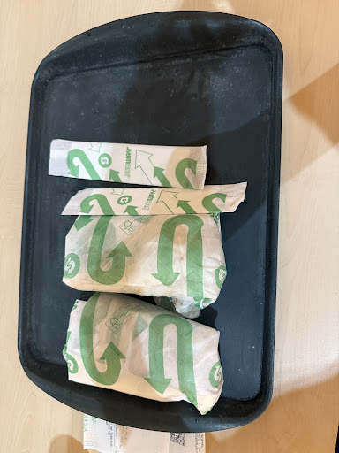 Tudo bagunçado, as meninas tudo rindo toda hora (não todas, mas a maioria), aí até coloquei a foto, a menina da limpeza colocou a bandeja suja em cima da bancada, a menina do caixa colocou meu lanche em cima da bandeja suja e molhada e me deu kkkk, eu falei “moça, a bandeja está molhada e suja”, ela passou um papel toalha na bandeja e me deu dessa forma que está na foto.. olha, já fui pra diversos lugares do Brasil e comi subway, esse foi o pior de todos, sem padrão nenhum, nojento, não consegui nem...