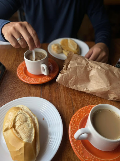 O café estava uma delícia, e o pão? Melhor ainda! Diferente de outros cafés que já visitei, fiquei surpresa ao provar um pão em que o ovo estava bem cozido, nada oleoso, e o pão bem crocante. O pão com banana também estava maravilhoso, com a banana no ponto e nada gordurosa.