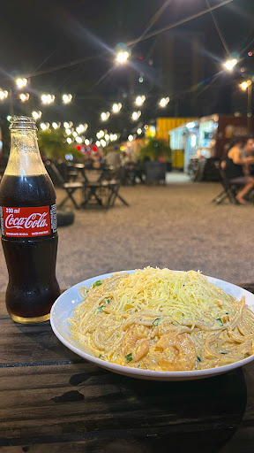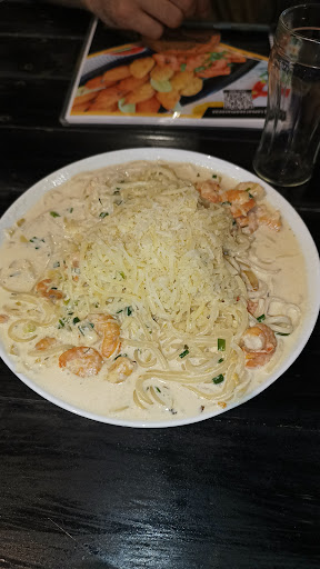 A comida é boa, tem potencial. Pedi uma massa de camarão ao molho branco, porém estava muito líquido, quase pedi uma colher para comer. Vi um vídeo que viralizou no tik Tok desse mesmo prato nesse mesmo lugar e o molho era bem mais encorpado e aparentemente suculento. Além disso, outro ponto negativo na minha opinião e que não consegui comer até o final, foi pq tinha MUITO cheiro verde (cebolinha) o que incomodou bastante ao meu paladar. Excesso de verdura não significa sabor. No mais, fiquei muito satisfeita com a quantidade de camarões, quantidade realmente...