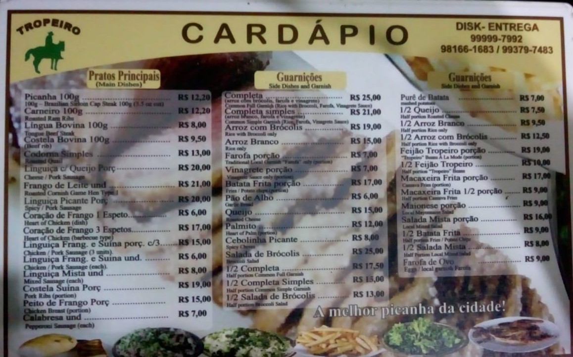 Read moreO tropeiro é um restaurante que estava na minha lista de preferidos, sempre fui muito bem atendido, e a comida sempre perfeita (amo carne, então sempre procuro ir nos melhores ) porém, minha experiência hoje foi horrível… Hoje estou viajando e decidi almoçar com amigos do trabalho antes de ir, os levei ao tropeiro, baseado nas minhas boas experiências anteriores, mas hoje foi extremamente desconfortável, nosso pedido foi uma picanha suculenta, veio fria, e foi pedido pra trocar, o que fizeram de bom grado, logo após, o abacaxi assado, que parece que foi maçaricado, pq só veio queimado por fora, por dentro duro e frio, batatonese veio mais ou menos, a maionese usada não era das melhores, mas passou, o pior foi a calabresa assada, com cheiro ruim, gosto ruim e acabou por enterrar meu almoço, devolvemos, e pedimos a conta na hora, e pelo menos não cobraram a calabresa estragada, pq aí eles conheceriam a pessoa extremamente abusada que eu iria me tornar, o restaurante não estava lotado, então não teria a desculpa da pressa, prezo pela educação, chamei o garçom sem fazer alarde, sinalizando com a mão para os garçons que ficam na frente, mas não é a primeira vez que chamo e fingem que não viram, ate que o rapaz atendendo outra mesa, viu que eu sinalizei e veio até mim. Finalizo dizendo que minha experiência frustrada me faz perder a vontade de voltar ao lugar, que era tido como um dos...