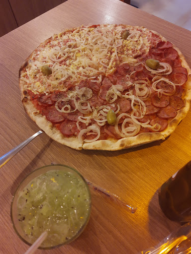 No perfil do Instagram, informa que no horário do jantar, o estabelecimento abre às 18h. Acabei chegando ao local no horário exato da abertura. O pessoal ainda estava organizando algumas coisas e pediram para que aguardassemos um pouco, enquanto isso, fui olhando o cardápio. Só por volta das 18h30 é que um funcionário voltou a mesa em que estava perguntando se eu já havia pedido algo e informando que eu já poderia pedir. Para a promoção do "pizza a vontade", você pode pode pedir a pizza no tamanho pequeno (1 sabor) ou grande (2 sabores). E repetir quantas vezes quiser. Não funciona com pizzas "volante" como nos rodízios mais tradicionais. A ideia é interessante, mas seria melhor que a pizza pequena pudesse também dividir o sabor meio a meio. Não houve demora nos pedidos. A pizza é boa, massa fininha, bem recheada, poucos sabores, mas suficientes para uma boa experiência. O local é pequeno, então, nesse dia, por volta das 19h30-20h o estabelecimento já estava...