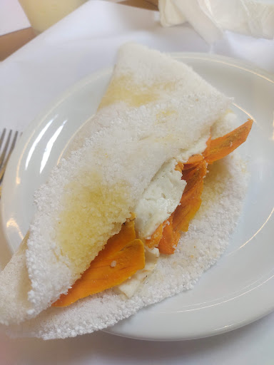 Read moreUMA VERGONHA DE SERVIÇO. Fui conhecer o local com duas amigas e é realmente muito lindo. Até que fomos bem atendidos e tratamos todo mundo bem. Até que chegou meu pedido: uma tapioca com queijo coalho e eu abri a tapioca pra ver, era uma fatia tão fina de queijo que não consegui acreditar. Achei que tinha vindo errado. Chamei uma atendente e em vez dela levar o prato e/ou chamar o gerente, ela começou a justificar que era assim mesmo e se eu queria um adicional. Depois foi embora sem resolver meu problema. Outra atendente olhou e foi até nós, então, falei pra essa segunda pessoa e mostrei a tapioca mais vergonhosa que vi na vida. Levei com bom humor, mas pasmem, essa também não fez nada. Eu comi uma tapioca seca, com um queijo que nem senti o gosto e EU E MINHAS AMIGAS SAÍMOS E DISSEMOS QUE NUNCA MAIS VOLTARÍAMOS LÁ. Faltou treinar as funcionárias, que quando houver uma reclamação do cliente, elas chamam o superior e ele resolve, não é pra estar dando explicações sem base para o cliente. Segue a foto da vergonha de...