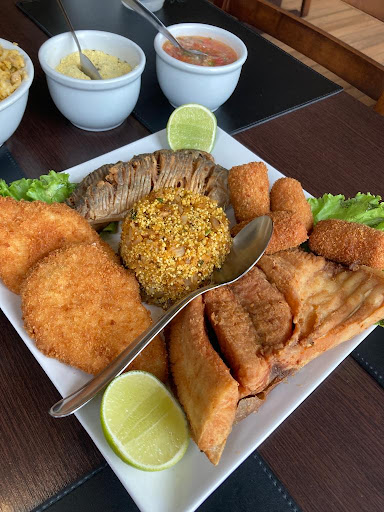 O bolinho de pirarucu é melhor que o de salmão. As sardinhas são bem fritas, dá pra comer os espinhos. O Pirarucu à casaca estava melhor do que o à milanesa. Mas o melhor mesmo é a costela de tambaqui: bem frita e carnuda.