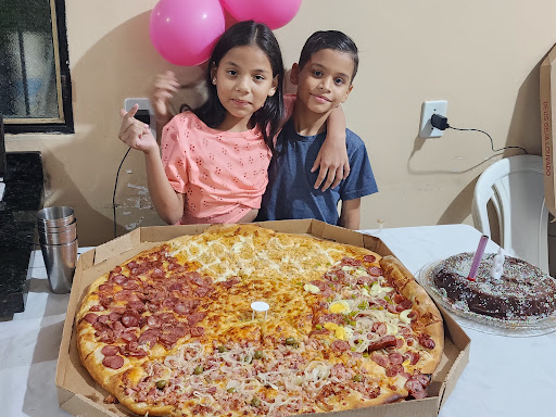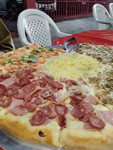 Pedi uma pizza grande, porém veio uma pizza do tamanho médio. Que diziam ser da grande.A massa veio torrada como se fosse uma torrada mesmo. Me parece ser de uma massa pré-fabricada. Pedi um pizza com 4 sabores. Sendo o sabor que se dizia ser de portuguesa, veio com calabresa, não tinha azeitona. A de frango, o catupiry parecia ser velho, ou de marca inferior. A parte de chocolate um fiasco, não foi chocolate de verdade, foi algo parecendo com leite condensado com achocolatado muito ruim. Ou seja, pagamos porém não valeu a pena. Experiência ruim. Ninguém Gostou. Muitos gatos no local, comendo embaixo da mesa. Precisa melhorar bastante....