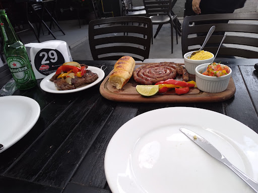 Read moreO local de venda na frente é show. A parte de restaurante/bar deixa a desejar. Garçons precisam de proatividade, simpatia e agilidade. Apesar de não ter sido bem atendida HOJE, VOLTAREI OUTRA VEZ. Hoje fui la.pela primeira vez no restaurante. Ja havia ido na parte do mercado comprar algumas coisas. Ja na chegada eu tive q juntar duas mesas pq o garçom nem tchum pra gente. Éramos 6 pessoas. Ai tudo bem. Juntamos as mesas e chamamos o garçom. Pedi uma coca e uma agua e quando minha amiga perguntou sobre os hambúrgueres do dia, ele simplesmente foi buscar as bebidas e minha amiga ficou sem.resposta. Quando ele voltou ela.perguntou se ele havia escutado e ele respondeu todo sem graça q sim. Fizemos os pedidos. O arroz foi o ultimo item. Ja havia ate acabado a carne do espeto. Pedi pimenta, depois pedi...