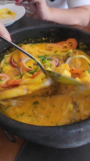 Atendimento ótimo, entretanto decepcionada com o prato... Fui indicada p ir lá pela qualidade da comida, então pedi pirarucu escabeche com camarão. Não demorou, mas o pirarucu acreditem, era o salgado(seco) e a parte do couro, dos 7 pedaços, somente dois pareciam realmente lombo! Além disso, como cozinho, tenho a impressão de que já estava pronto, não deu tempo de fritar. O molho vermelho era bem concentrado e visivelmente daqueles prontos. Os camarão eram grandes e bem feitos. Mas, fui desejando comer um bom prato! Não penso em voltar, pq já fui em outras peixarias de valor muito mais acessível e que servem com a carne do peixe. Cuidado tb com a farofa de banana, pois parece pedaços de banana frita (esquentadas) misturada com farinha branca. Enfim, não costumo falar mal qdo não gosto do lugar, mas achei uma afronta servir os pedaços de...