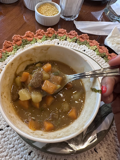 Read moreO ambiente tem decoração linda e um espaço muito agradável. A sopa estava incrivelmente deliciosa e super bem temperada! Os dadinhos de tapioca também estavam ótimos! Mas em relação aos outros pratos, foi uma decepção: a rabada veio totalmente dura e sem sabor; o pirarucu a casaca estava totalmente seco, sem tempero, sem sabor e totalmente sem graça (parecia que tinham molhado farinha de piracuí com água e jogado uma lata de ervilha em conserva em cima). Apenas o vatapá, que veio acompanhando o pirarucu a casaca, estava ótimo. De sobremesa, pedimos torta de banana (que pensamos ser feita no estilo amazonense, com banana pacovã frita).. mas era feita com calda de banana caramelizada, o que deixou a sobremesa extremamente doce, a ponto de não conseguirmos comer, pois a calda era muito doce, a banana caramelada era muito doce, o merengue estava doce e o creme também já era doce. Alguém precisa provar os pratos antes de serem servidos aos clientes para corrigir esses detalhes, pois o lugar é...