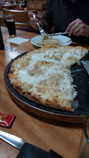 O ambiente é bom, o atendimento também foi bacana. No dia pedimos um calzone, pão de alho e uma coca-cola. O pão de alho era aqueles comprados, bem gordurosos, esperava algo artesanal. O calzone tinha passado do ponto, a massa meio queimada por fora e o recheio estava frio, a mussarela ralada estava intacta sem derreter.