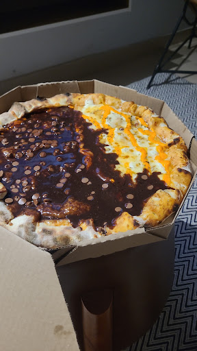 Infelizmente, nossa experiência com esta pizzaria foi extremamente decepcionante. Pedimos uma pizza para entrega, metade chocolate e metade quatro queijos, mas, quando a pizza chegou, a parte doce tinha invadido duas fatias inteiras da salgada e parte de todas as outras fatias salgadas (ou seja todas as fatias vieram com chocolate, em maior ou menor grau), impossibilitando o consumo da parte salgada como deveria ser.