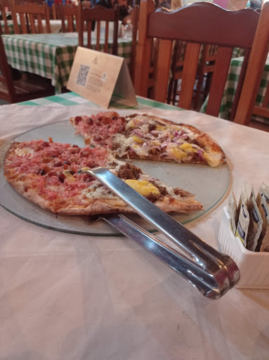 Eu particularmente gosto muito de lá, mas eu havia visto algumas avaliações e quero ressaltar algumas informações importantes, o ambiente possui um toque mais rústico que faz você sentir como se estivesse em uma pizzaria clássica, só que algo que quebra um pouco isso é o espaço infantil, ele é super bom para quando você vai com crianças e quer tirá-las um pouco das telas, mas é super barulhento e as crianças correm entre as mesas, isso não é algo do restaurante em si, mas quando você for lá pode se sentir um pouco desconfortável. O atendimento é ótimo, super limpinho, se você for em qualquer mesa está tudo organizado, os atendentes são super atenciosos e nos atende sempre bem. A comida é super gostosa, mas não dou 5 estrelas por conta do suco ele é muito aguado e como não tomo refrigerante e não queria tomar água naquele momento foi muito ruim, pois geralmente costumo beber suco nos restaurantes fiquei meio decepcionada. Minhas conclusões a comida é deliciosa, só não recomendo os sucos, o serviço e os atendentes são maravilhosos e quando for sentar evite uma mesa muito perto do espaço infantil, eu recomendo super para quem...