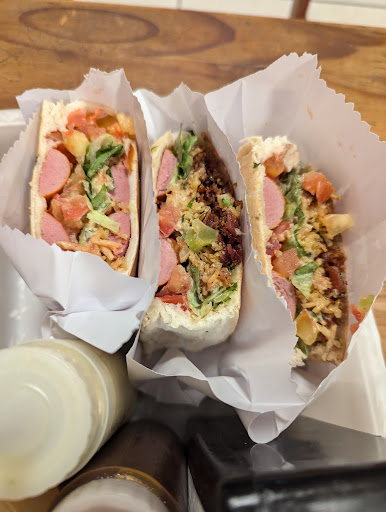 Read moreEu nunca mudo os lugares que vou, e eu estava indo em um deles, porém eu resolvi testar, lugar interessante, chamativo, só que pelo tamanho do lugar e ele estar vazio me "chamou" atenção todavia, imaginei ser do "dia" e do horário o movimento! Entrei, pedi, e eu pensei que tinha hambúrguer no meu, só que eu li errado, infelizmente! Quando eu vi o lanche, e o que tinha nele eu me assustei, pelo "tanto" de coisas que tinha nele... ainda mais pelo valor! R$32 em pão, salsicha, alface e batata palha, sinceramente, eu pedi pra tirar o queijo. Na primeira mordida eu não senti vontade de comer mais, o sabor não me agradou, de cara só que eu comi meio lanche, estava com fome! Pedi pra levar o restante pra casa pois estava cortado ao meio e fui a outro lugar para matar a fome. O pessoal é muito educado, a moça do caixa, a querida que me explicou a situação um mulher que estava na chapa, maravilhosa! Todavia o produto mesmo sendo mais simples me deixou bem chateado. Achei o valor pelo que oferece, acima da média mesmo sendo...