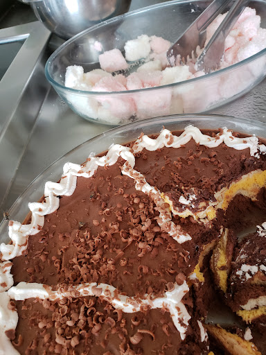 Ao irmos para o local do buffet constatamos que, a carne era "sobra" do rodízio (sabe o final do espeto? Então), havia uma infestação de moscas (inclusive varejeira), moscas sentando na comida, nos doces, o garçom passava a todo instante ao lado do buffet e não espantava as moscas. Ao serem indagados no caixa quanto a fazer algo, disseram ser difícil controlar, que tinham os aparelhos e tudo mais, porém por conta do clima e espaço ficava impossível de controlar.