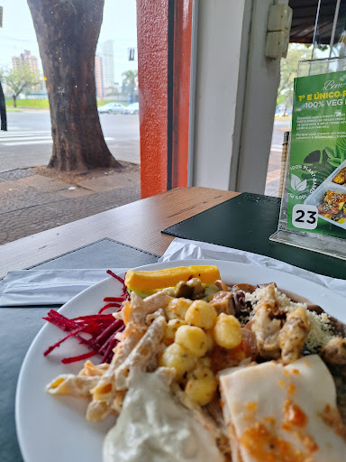Um dos melhores restaurantes com buffet de Maringá. É possível pesar ou comer a vontade por um valor fixo, tem mais de uma opção de sobremesa de cortesia. Bebidas a parte. O é cardápio 100% vegano. Já frequentava antes de me tornar vegana porque achava a comida deliciosa.E já levei familiares e amigos não veganos que se surpreenderam com o sabor da comida vegano. Comida boa que satisfaz todos os paladares. O atendimento é muito bom e há uma parte onde pode se comprar alguns produtos veganos para fazer em casa, como hambúrguers por exemplo. Eu como pouco e por isso sempre peso o prato e não gostuna ficar mais...