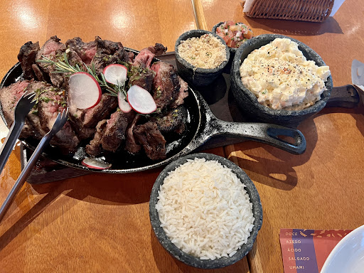 Read moreFui ao Fogo & Vino esperando uma refeição satisfatória, mas saí extremamente decepcionado. Isso que sai da minha cidade (Londrina) para um compromisso em Maringá e resolvi jantar em um dos restaurantes do complexo do mercadão , Pedi um prato supostamente para 02 pessoas (era o prato do dia ) muito bem escrito na placa (para duas pessoas) , mas o que veio foi uma piada: um único bife de chouriço ridiculamente pequeno , acompanhado de uma quantidade mínima de arroz e polenta. Totalmente enganoso e desrespeitoso com o cliente.