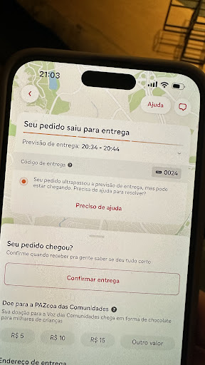 O atendimento é no caixa e você recebe um totem que avisa quando a pizza está pronta e você a busca no balcão.