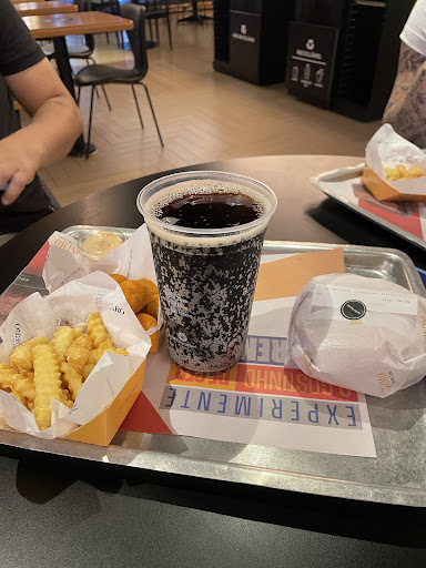 It looked interesting from the outside so I walked in, it's really cramped, with a low ceiling and bamboo plants all around taking away the opportunity to sit, relax, eat and enjoy the view. Because everyone's next to you, you will hear lots of noise. McDonald's down the road is a lot more spacious and unpretentious. I heard the fries would be great. They were pretty dry and tasted cardboard-y. I asked for mayonnaise - a very common, very standard sauce. I was told I had to walk back to the kiosk and order it, when the food was already waiting for me. That was terrible service. Nowhere on the ordering system was I ever advised that such a basic sauce would be chargeable. I would have no problem paying for it since my order of a burger with cucumber relish, a large lemon tea with no sugar, and the fries had cost me almost R$70. The tea was pretty watery for my taste. I didn't want sugar but I wanted it sweet. I didn't ask but they probably didn't have sweetener and if they did, she would probably tell me to go back to the kiosk to order it too. Have I mentioned that the fries tasted like old newspaper? The buffalo sauce was awful, good thing it was in a tiny container as it went almost completely uneaten so it went to waste. So, all in all, I'd give zero for the service but that's not an option so I'll settle for 1 star. Also 1 for the food, which was really overpriced for the quality on offer. 3 for the atmosphere, at least the place had some character - if you like "urban". I won't go back when I'm in Maringá again, and I wouldn't recommend it. I left half of the tea in the cup, half of the fries in the basket, and walked to McDonald's for a milkshake that never fails to disappoint. This place is trying too hard. Ps. They accept...