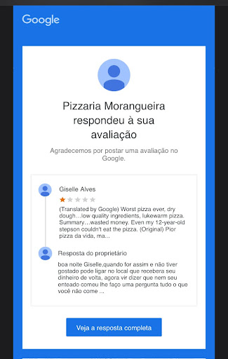 Read moreRespondendo ao comentário na minha avaliação…a você que fez esse questionamento absurdo na sua resposta: Eu pedi a pizza para o meu enteado, ele escolheu comigo o sabor que queria. Quando eu disse que nem ele quis comer, é porque uma criança não tem o paladar tão aguçado como um adulto. E mesmo ele querendo muito comer uma pizza, não comeu. Vocês deveriam aceitar as avaliações negativas, que por sinal não foi só a minha e tentar melhorar. E não responder dessa forma um cliente que pagou quase R$ 50,00 no seu produto e não...