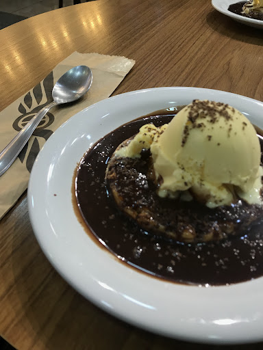 Tomamos um cappuccino de avelã ($16+-) e comemos um petit gateau ($17+-).