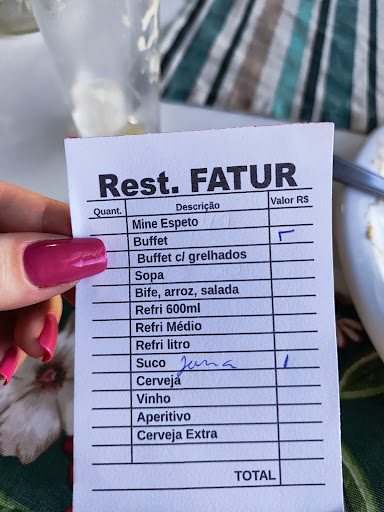 Read moreVou religiosamente todas as terças-feiras no Fatur onde encontro um restaurante com custo-benefício razoável. Ontem, dia dos namorados, quebrei a tradição e resolvi ir na quarta-feira com minha esposa. O restaurante apresentou uma decoração modesta, alguns itens diferentes no buffet e cobrou um valor quas 50 % mais caro tanto para o jantar quanto para as bebidas. Achei extremamente injusto e vou ficar mo mínimo 4 terças-feiras sem ir lá para que aprendam a não explorar as pessoas...