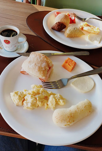 O café da manhã peca por não oferecer uma variedade maior de produtos e quase tudo leva presunto e bacon. Uma máquina de café seria...