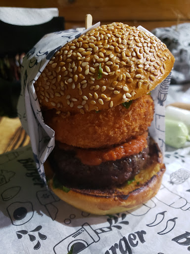 Fui pelas boas avaliações daqui do google, de início fui bem recebida, porém fui informada que deveria ser feito o pedido pelo site (vc pode fazer o seu pedido colocar como retirada e fazer a refeição no local). O ambiente é pequeno, simples porém é rústico e bonito. Fiz o pedido do hambúrguer Angry Bird, ponto positivo: suculento e muito gostoso. Hambúrguer bem montado, salada fresca. Pedido saiu menos de 20 minutos. Os molhos já vem no saquinho e com duas opções grátis, cada acréscimo é R$ 0,80 centavos. As carnes suínas e bovinas pra quem gosta de BEM PASSADA ou ao PONTO é bom sempre lembrar, pois se não vem mal passada. Várias opções de hambúrguer, bem diferente do que estamos acostumados aqui em Montes Claros, preço ok pelo que é entregado. Várias opções de bebidas, dentre elas zero açúcar. É uma hamburgueria que eu...