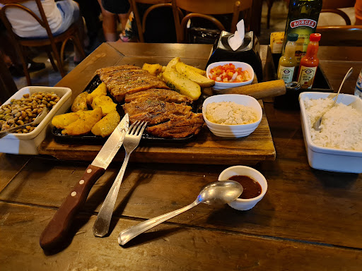 American review. Went in not knowing what to expect but it has a massive seating area and has a similar vibe to a nice sports bar. No pictures on the menu so we had to translate every food item and hope we got something good. Some parts of the menu say "for 2 people" or "for 4 people". We avoided those and went to the grilled meat section. We ordered two items from there but the waiter stopped us because he knew it would be a lot of food. Hint...500g = 17oz. With just the Cupim, shrimp and garlic bread appetizer my sister and I were super full. Wasn't the best I ever had but about what you would expect from an Applebee's. The happy hour is great. No English like most places but got along well with the basic phrases. Oh and don't sit next to the outer edge or you might be...