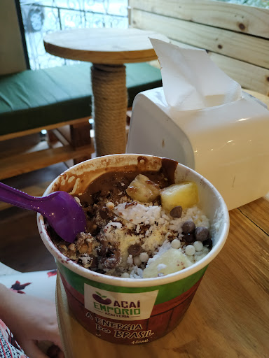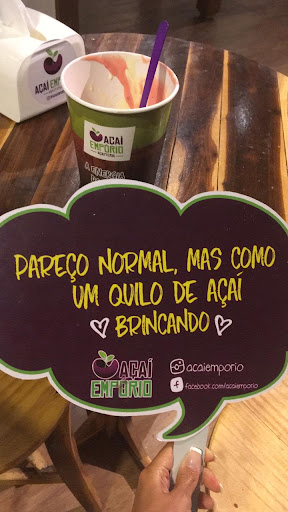 Muito legal o Açaí Empório, pois tem muita variedade de sabores quem nem precisa adicionar os toppings (complementos). Recomendo o creme de Pitaia, que tem um sabor muito suave e uma cor vibrante que chama muita atenção. O ambiente é todo climatizado, com mesas rústicas de material de pallet. Outro detalhe legal é o ambiente externo que possui cadeiras bem confortáveis e um visual espetacular. Os atendentes foram super simpáticos e até ofereceram degustação gratuita dos sabores, o que garante a manutenção da freguesia. Tem uma grande variedade de toppings, que vão desde frutas até Nutella. Um detalhe importante é o topping de côco, que é feito de raspas naturais do côco, sem adição de açúcar ou...