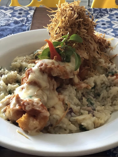 Read moreO atual espaço (mesma rua do local anterior) é amplo e aberto, possui jardim, mesas externas e internas. Há também espaço kids e fraldario. O atendimento é simpático mas houve demora e o suco chegar depois do prato mostrou falhas. O principal: o prato estava com apresentação estranha (foto) : arroz com legumes e alguns poucos e bem pequenos camarões, tudo junto, além de sem sabor e bem diferente do divulgado no Instagram. Conhecendo o bistrô de anos anteriores quando o proprietário se fazia presente, o restaurante atual é bem diferente do passado: tinha ótimos pratos, camarões selecionados, bem frequentado no almoço, ambiente com "vida" e...