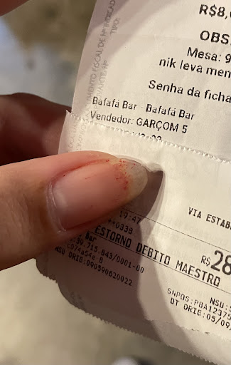 Mesmo estando na parte do bar que não é na praça, fui abordada por um grupo de homens pedindo “ajuda” para uma casa de reabilitação de pessoas alcoólicas, não preciso nem comentar o quanto é desconfortável tal situação.