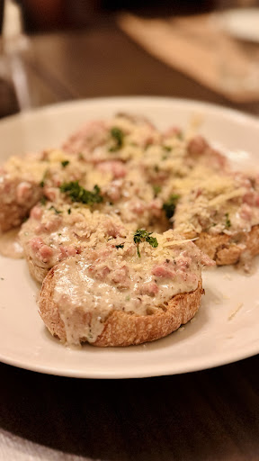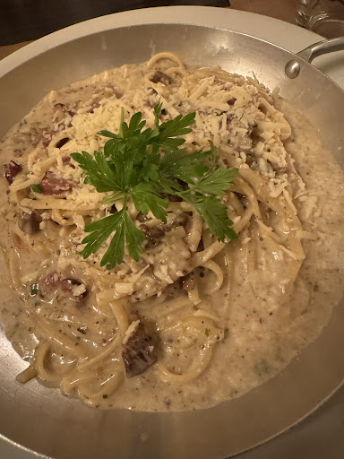 Read moreAmbiente pequeno, o chef, apesar de ter sido acolhedor com os clientes a nossa volta sequer se apresentou, nossa entrada foi boa (na verdade essa é a única razão para minha nota não ser menor), mas o prato principal (espaguete a carbonara) foi decepcionante! No prato faltava sal, pimenta e, principalmente, bacon. Mais parecia uma sopa de ovos com macarrão, o qual hora estava ao dente hora estava fora do ponto. Tive muita vontade de perguntar se estava faltando ingredientes na cozinha, mas, acredito, não dariam atenção que qualquer cliente merece...