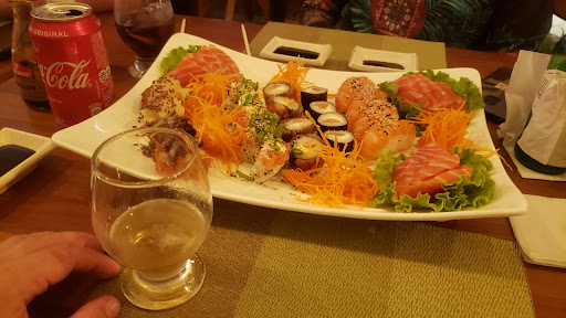 O ambiente é agradável, totalmente climatizado e tem até lago de peixe na parte interna. Acho que é a fachada deveria Estar mais preservada, até para transparecer Toda a qualidade que experimentamos no sushi