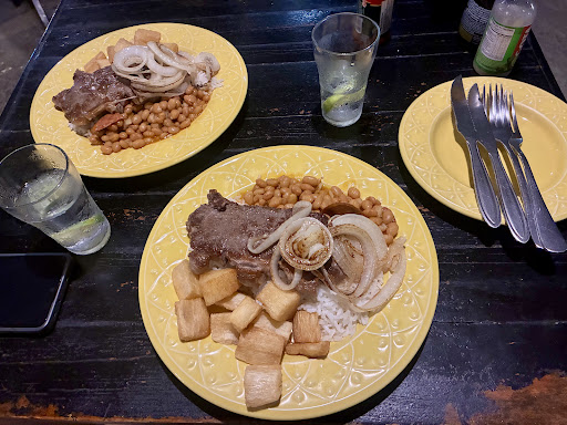 Fomos muito bem recepcionados, o atendimento foi atencioso do início ao fim. Pedimos o Contra Filé de Sol (R$33,90 cada prato): bife no ponto certo, com cebola na manteiga da terra, acompanhado de arroz, feijão, farofa e macaxeira frita. Um prato simples, mas muito saboroso!
