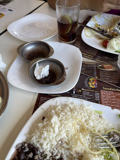 Estive no local durante o mês de setembro e infelizmente o restaurante deixou a desejar. De início, pedimos um espeto de frango e um de carne, que achamos bem pequenos por sinal. O de frango estava muito mal passado por dentro e tinha um gosto estranho, sabe quando o frango tá meio envelhecido? Então, bem parecido. O de carne tava até bonzinho, mas nada de taaaao absurdo. A farofa, nossa, está muuuito longe de ser daquelas que a gente come com gosto. No lugar do tomate e cebola, poderia ser um vinagrete, que cairia melhor. Para beber, pedimos caipiroscas, que estavam ok mas eram muito pequenininhas. Depois do espeto, que não encheu nossa barriga rs, pensamos em pedir um mistão, mas ficamos com medo do frango vir novamente com um gosto estranho. Como já estavamos no local, pedimos uma pizza de carne de sol, que estava boa, mas achei o preço muito caro para o tamanho (acho q foi uns 28 reais). Meu marido pediu uma lasanha, que veio gelada! Pela experiência, acredito que vendam daquelas lasanhas prontas de microondas. O tamanho estava ok, mas teve que pedir para esquentar, porque ninguém merece comer lasanha gelada.