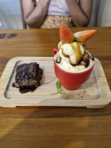 Comemos a língua com molho madeira e o um escondidinho, os dois estavam muito bom e veio bastante, sobrou para o jantar. De sobremesa comemos o brownie, achamos que vem muito sorvete para pouco brownie, mas gostamos bastante tbm, o sorvete tem um gosto mais suave o que deixa a sobremesa menos doce.