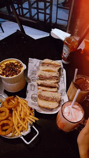 Minha experiência em geral achei razoável, daria nota 7/10. Gostei bastante do lanche, pedi o fondue de queijo cheddar, que de acordo com a propaganda no Instagram de vcs, vem (2 hambúrguers + batata frita + anéis de cebola + nuggets). E pedi também os milkshakes de morango e ovomaltine que estavam ótimos e a atendente que me atendeu foi bem simpática e prestativa.