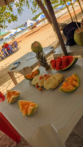 Garçons educados; Caldo de peixe gostoso (15 reais na data 21/03/2022, valeu a pena); Caipirinha e Caipirosca com bom preço (10 e 14 em 21/03/2022) Boas mesas e cadeiras com guarda-sol.