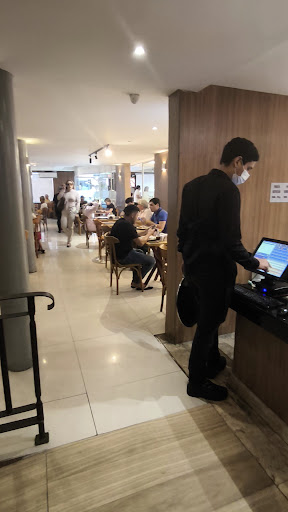 Por ter diversos salões com mesas para os clientes, quando o restaurante está mais cheio, o atendimento dos garçons/garçonetes tende a ser mais demorado.