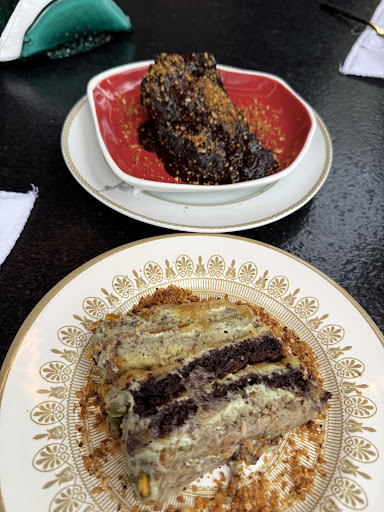 Pedi torta de cupuaçu com pistache e outra de banana com chocolate, que são SURPREENDENTES.